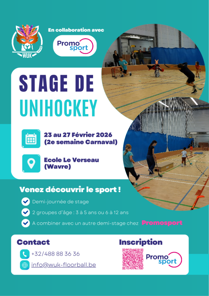 Le WUK organise un stage de unihockey durant la 2ème semaine du congé de février (du 23 au 27)!